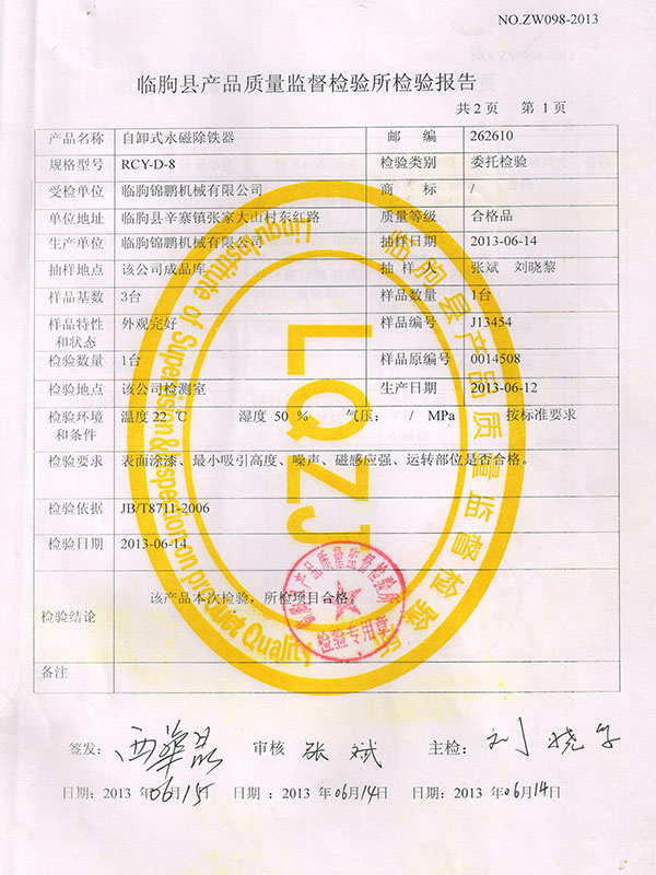 臨朐縣產(chǎn)品質(zhì)量監(jiān)督檢驗所檢驗報告
